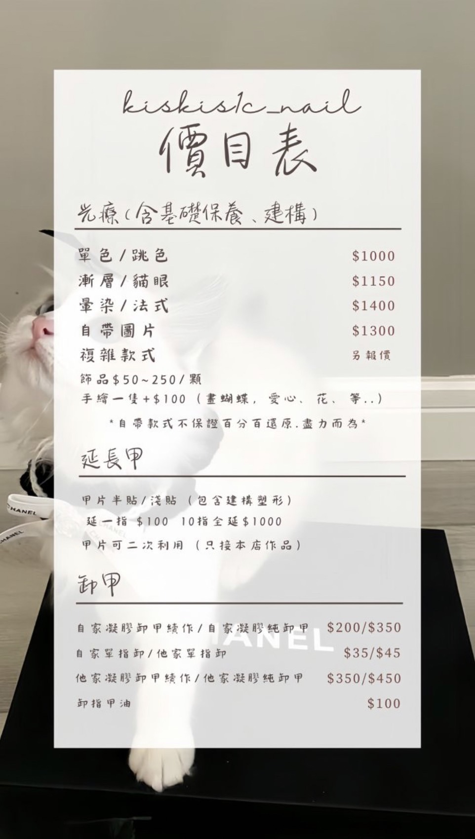 單色/跳色/漸層/貓眼/暈染/法式/自帶圖片/複雜款式(含基礎保養/建構)、延長甲、卸甲服務