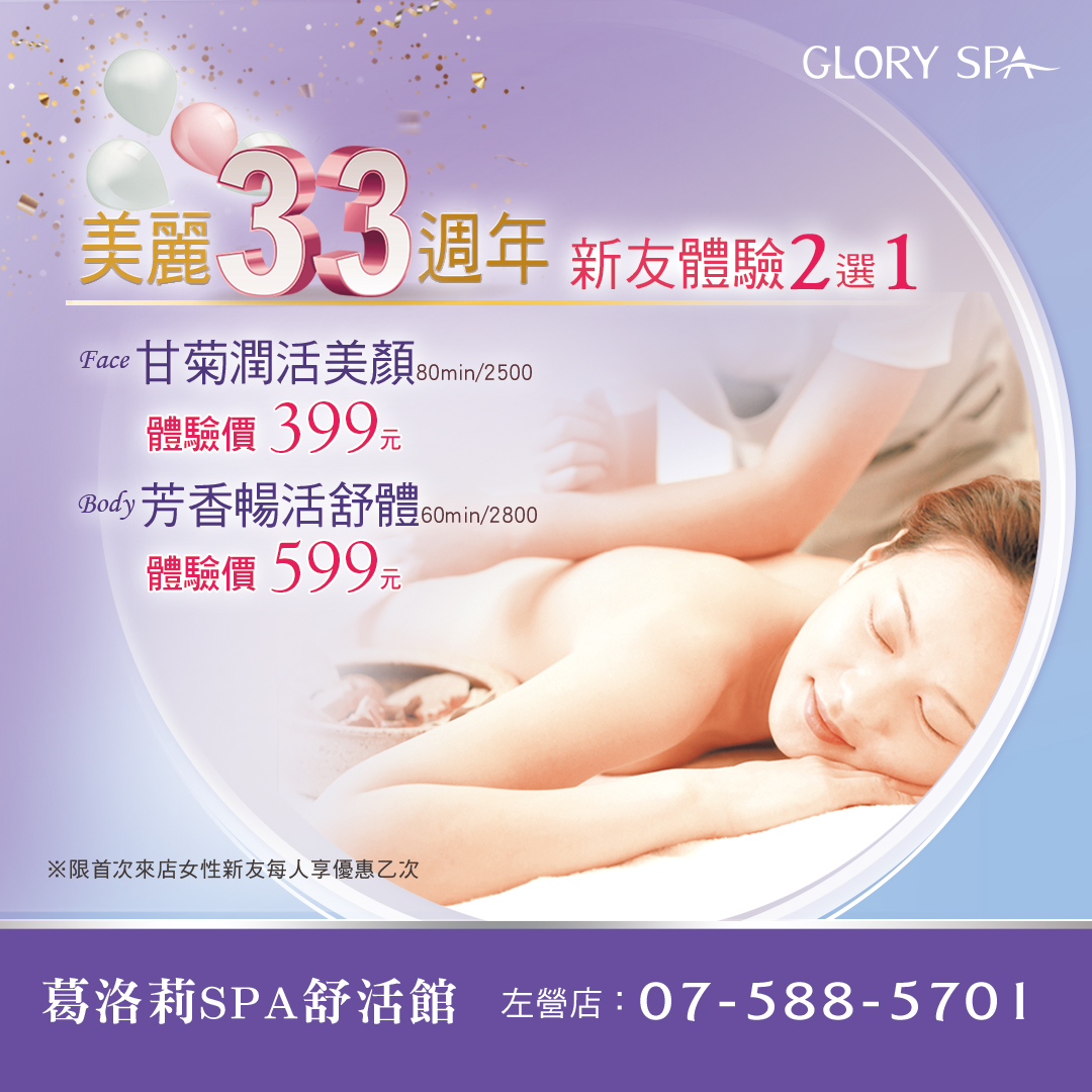 葛洛莉SPA美麗33週年~歡迎<女性新友>預約體驗